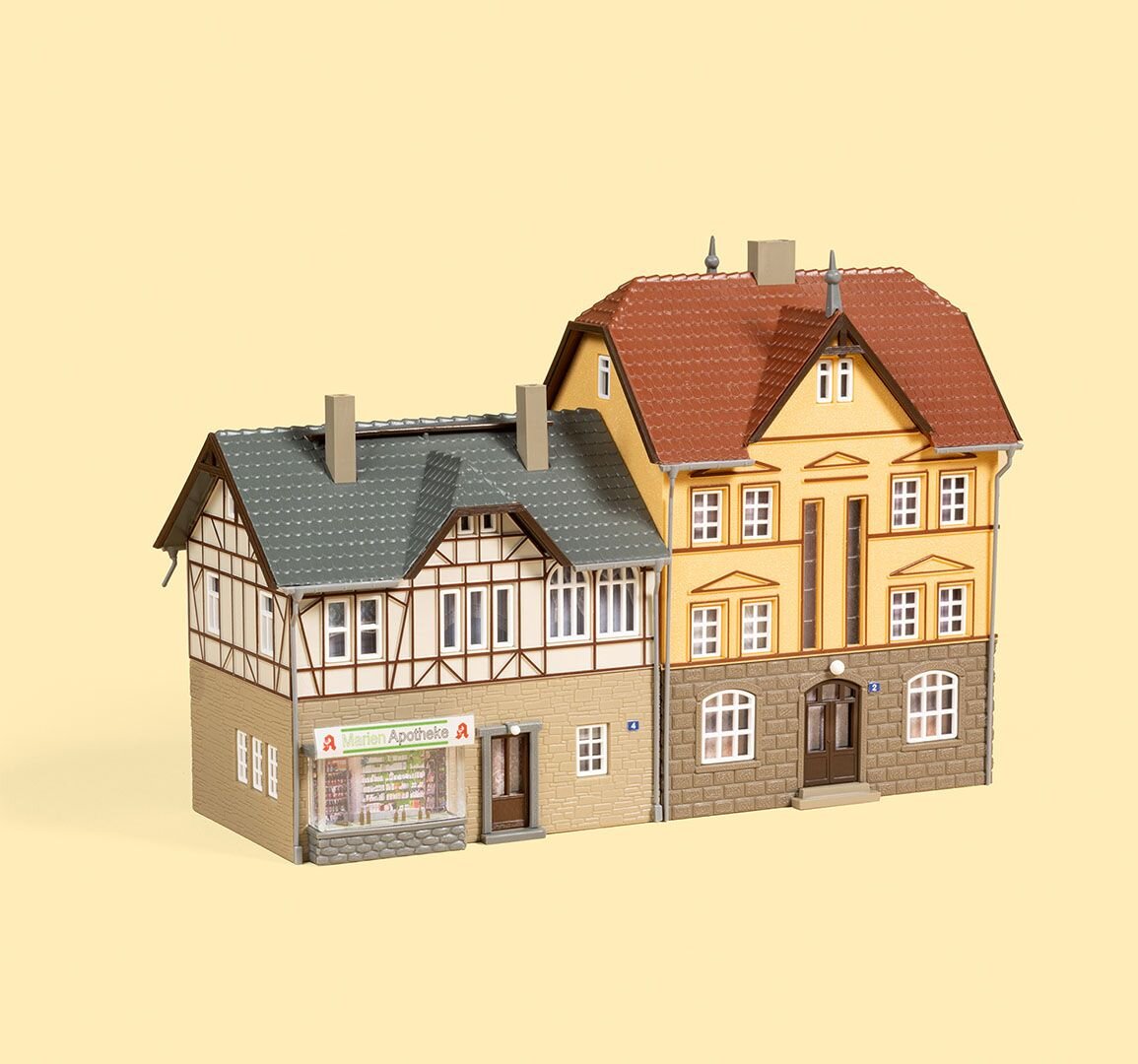 Beide Häuser ergänzen unsere Serie der Wohnhäuser Bahnhofstraße. Das zweigeschossige Haus wird durch Fachwerk geschmückt, im Erdgeschoss befindet sich eine Apotheke.