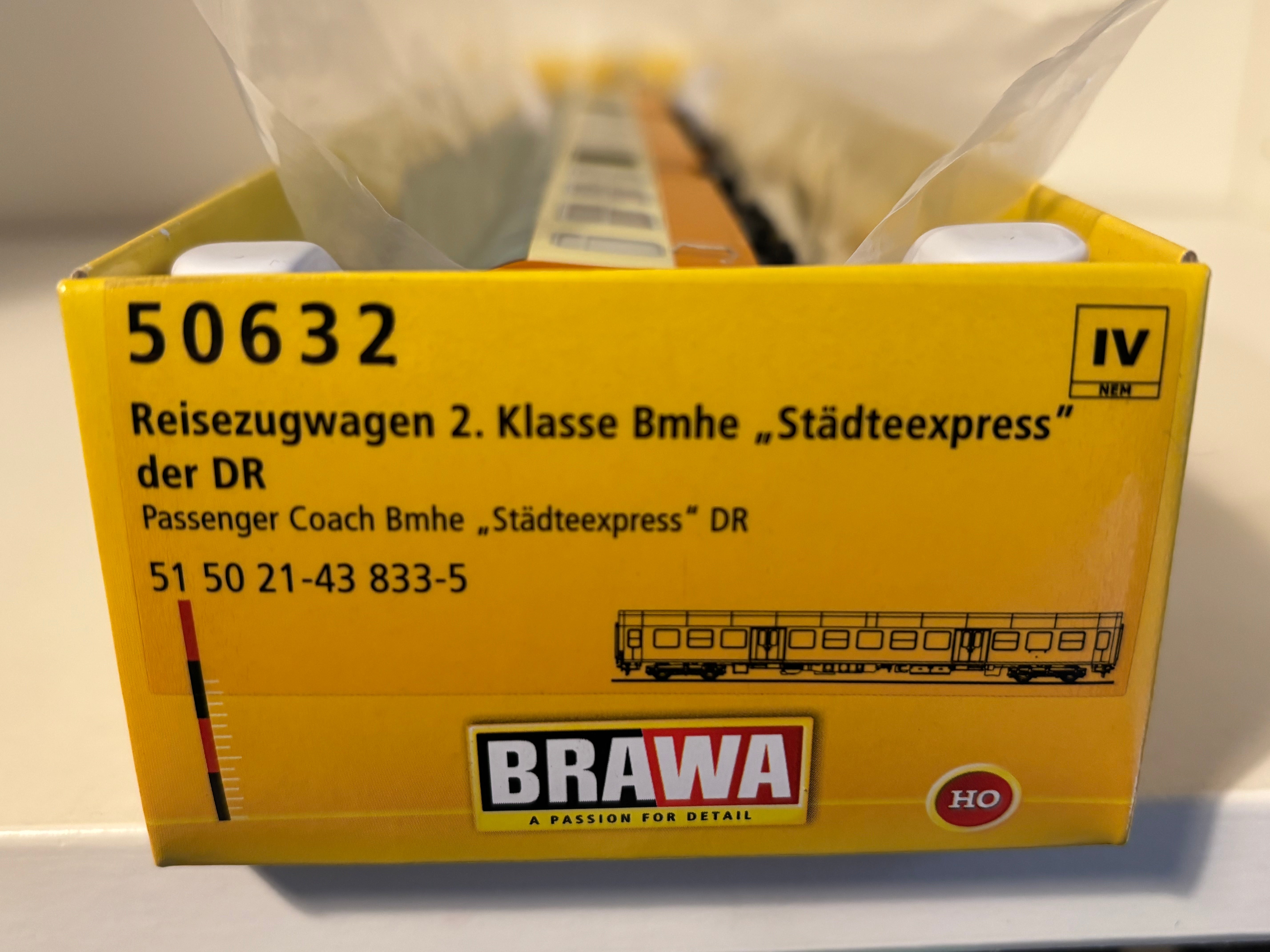 Brawa Reisezugwagen 2. Klasse Bmhe „Städteexpress"der DR / H0