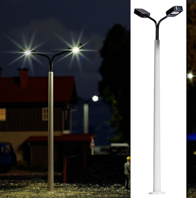 Mit 2 eckigen Lampenkörpern. Weißes Licht.