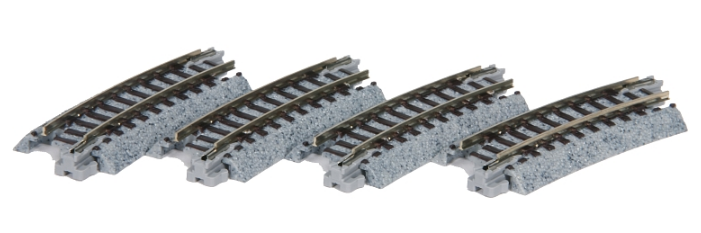 KATO bietet ein hervorragendes Spur N-Gleissystem mit einem graugesprenkelten Gleisbettungskörper (feine Körnung) an, das exakt maßstäblich, extrem stabil und ideal für alle Spur N-Modelle geeignet ist. Der Bettungskörper besteht aus elastischem Kunststoff und ist ca. 25mm breit. Die Gleise lassen sich über Steckverbindungen spielend leicht miteinander verbinden und rasten mit einem hörbaren "Klick" ein.