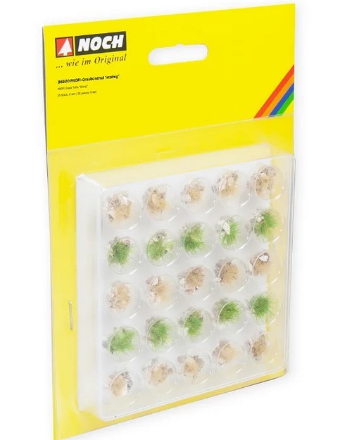 flächig mit dem NOCH Gras-Kleber (Art.-Nr. 61130 bzw. 61131) eingestrichenen Untergrund setzen. Anschließend bringen Sie Streu, Flock und Grasfasern wie gewohnt auf und "integrieren" die Büschel so