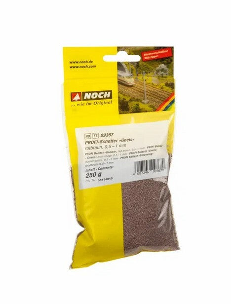 Die Körnung des PROFI-Schotters "Gneis" für Spur H0 und TT beträgt 0,5 - 1,0 mm.