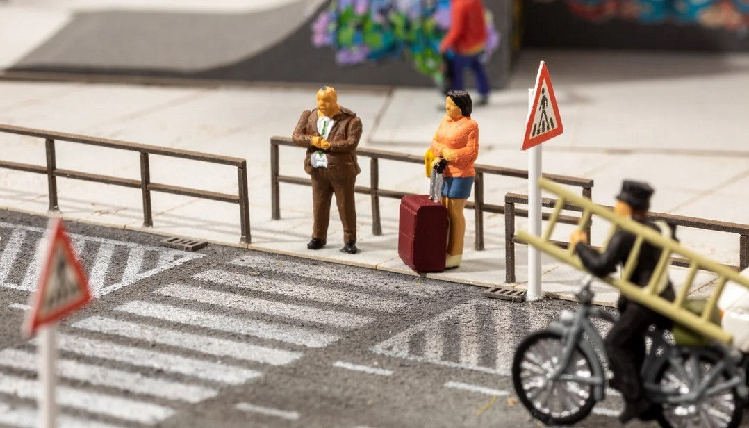 So können Sie mit den "einfachen Geländern" in den drei verschiedenen Farben sowohl Gehwege als auch Abhänge und Absperrungen definieren und so mehr Struktur auf Ihrer Modellbahnanlage erlangen.
