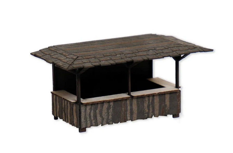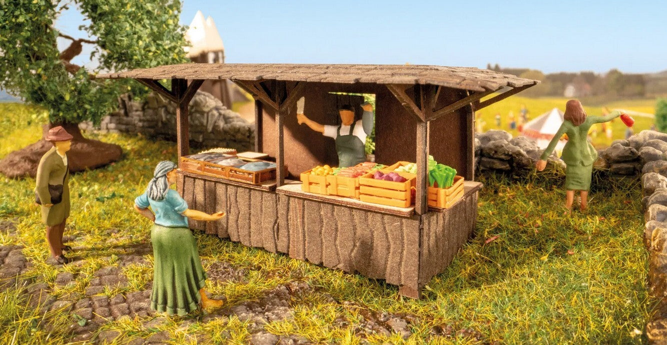 Der Laser-Cut minis Mittelalterstand lässt auch ihre Modelllandschaft noch realistischer wirken.