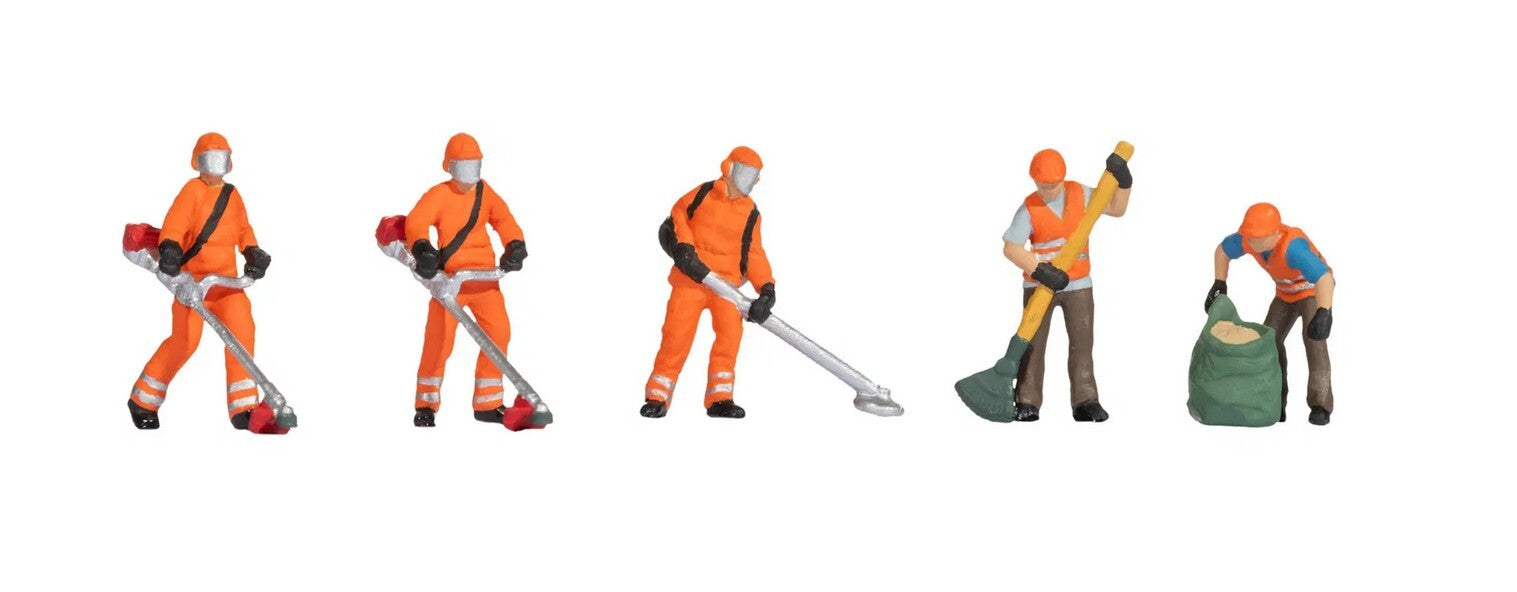 Mit dem Figuren-Set Mäharbeiten von NOCH bringen Sie realistische Landschaftspflege auf Ihre Modellbahnanlage. Das Set zeigt Arbeiter in Aktion, ausgestattet mit verschiedenen Werkzeugen wie Motorsensen, Rechen und Säcken für die gesammelten Abfälle. Ob für die Pflege von Wiesen, Parkanlagen oder Straßenrändern – diese detailreich gestalteten Figuren sorgen für authentische Szenen und beleben Ihre Modelllandschaft.