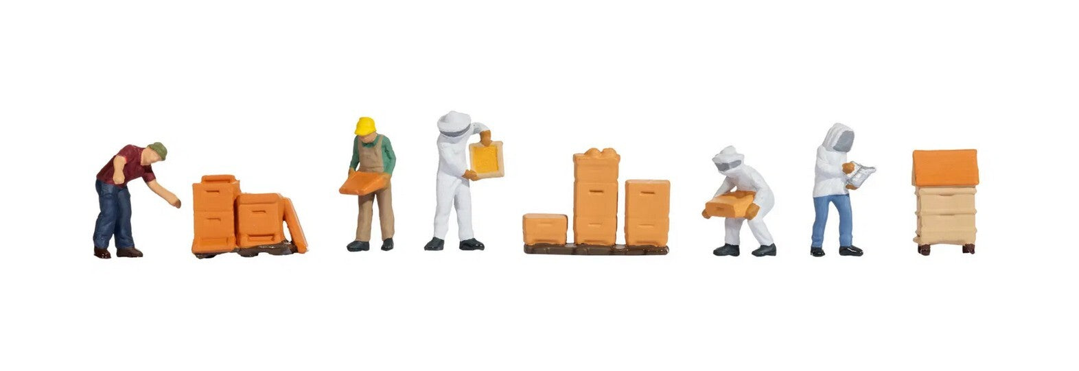 Mit dem Figuren-Set Imker mit Bienenstöcken von NOCH bringen Sie die faszinierende Welt der Imkerei auf Ihre Modellbahnanlage. Dieses Set zeigt detailreiche Imkerfiguren bei der Arbeit: vom Tragen der Bienenstöcke bis hin zur Inspektion der Bienenkästen. Die Figuren sind mit typischen Imkerschutzanzügen ausgestattet und schaffen eine authentische Atmosphäre, die perfekt in ländliche Szenen, Gärten oder naturverbundene Bereiche passt.