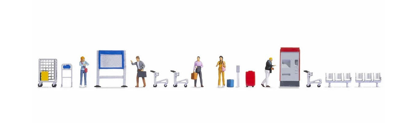 Der Bahnsteig ist der Dreh- und Angelpunkt einer jeden Modellbahn-Anlage. Hier spielen sich zwischen Fahrkarten-Automat, Sitzbank und Fahrplan wahre Dramen ab! Ist der Zug pünktlich? Kommt er überhaupt und wenn ja, bis wohin fährt er? Damit die kleinen NOCH-ler auf dem Bahnsteig möglichst bequem auf die Antworten warten können und gut ans Ziel kommen, haben wir dem Set Sitzbänke, einen Fahrkartenautomaten und viele weitere Zubehörteile zugefügt! Lassen Sie Ihrer Fantasie beim Dekorieren freien Lauf!