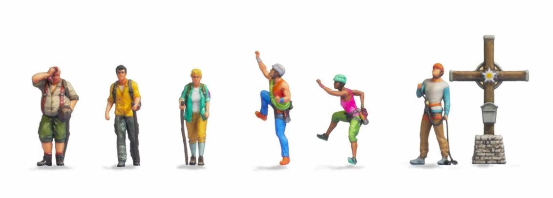 Im Set sind drei Wanderer, drei Bergsteiger und ein Gipfelkreuz enthalten. Die Wanderer sind mit Wanderstock und Rucksack ausgestattet, die Bergsteiger sind hingegen mit Klettergurt, Helm und Kletterseil auf dem Gipfel unterwegs. Das im Set enthaltene Gipfelkreuz lässt jede Bergspitze noch realistischer erscheinen ...wie im Original!