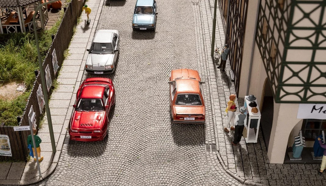 Entspannt auf dem Bürgersteig entlang schlendern. Genau das können die H0 NOCH Figuren auf unserem neuen Bürgersteig. Der neue, hochrealistische Struktur-Bürgersteig "Kopfsteinpflaster" passt mit seiner Oberfläche und Farbe perfekt zu den bereits erhältlichen NOCH Struktur-Straßen und -Plätzen der Serie "Kopfsteinpflaster" und "Römischer Verbund". Neu und für alle Straßen mit glatter Oberfläche und für den erhältlichen Markt- und Dorfplatz kommt der