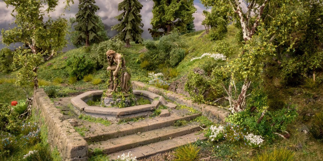 Das NOCH Hartschaum-Modell "Brunnen" wird liebevoll handkoloriert, mit feinen Details ausgeschmückt und anschließend mit einem superrealistischen, handgefertigten Baum veredelt. Die so gestalteten Modelle sind Highlights für jede Modell-Landschaft und ziehen alle Blicke auf sich.