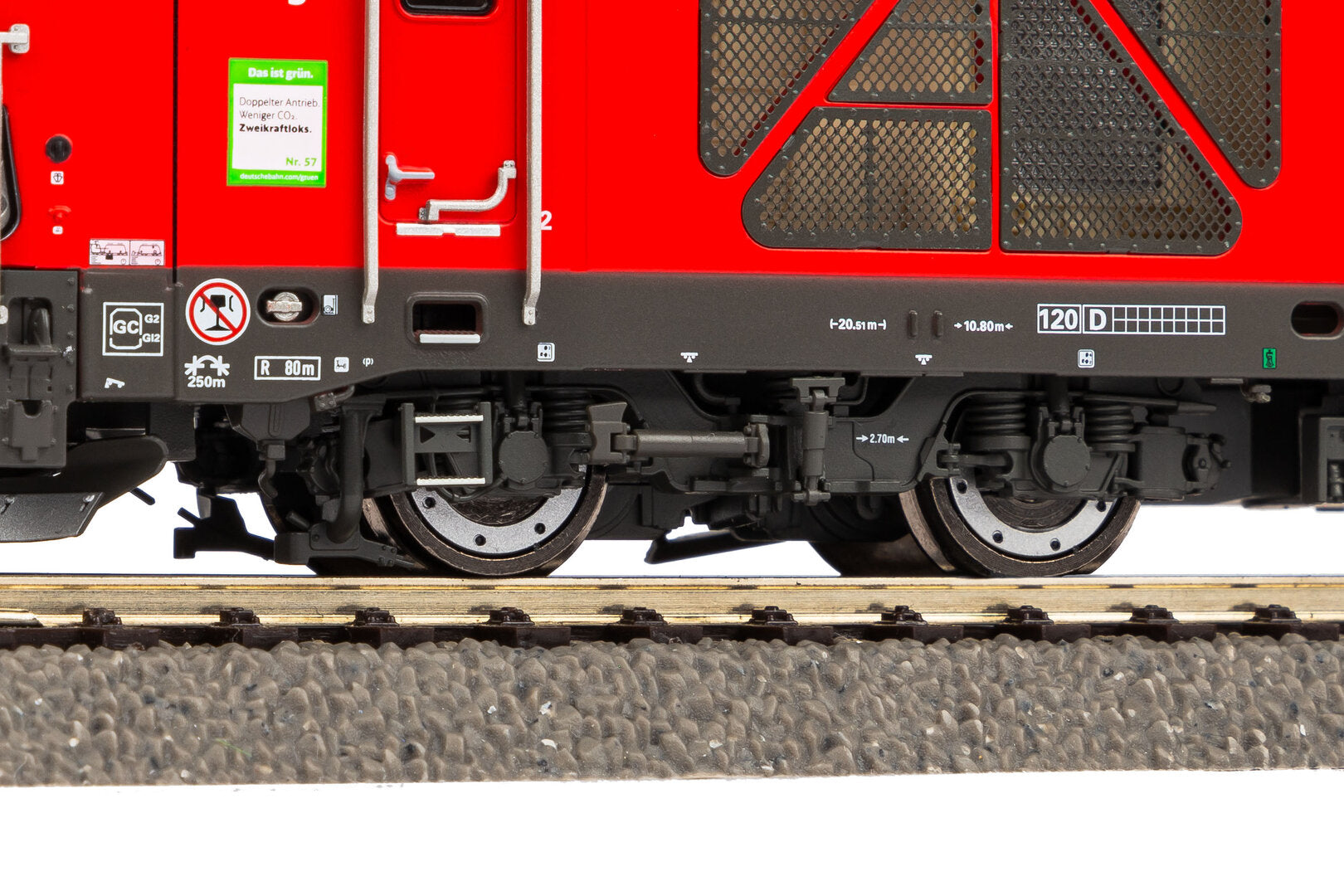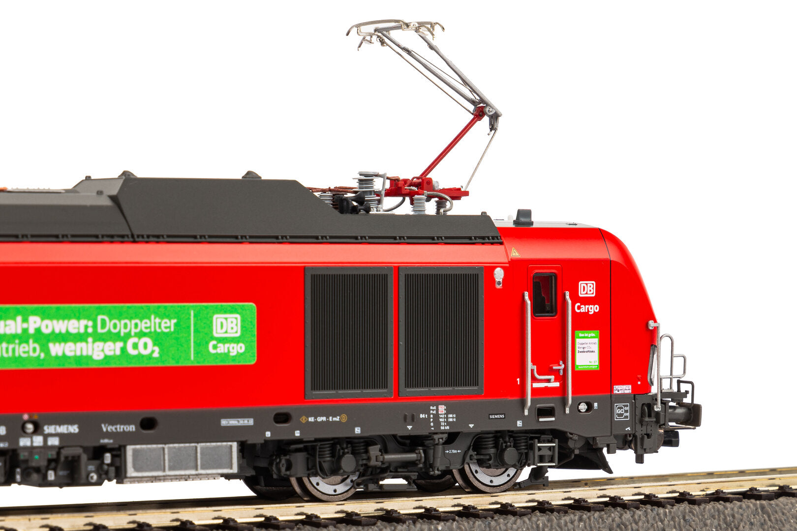 Die großen Seitenflächen mit den markanten Lüftern und das Dach mit einem Stromabnehmer prägen das Erscheinungsbild des modernen Vectron Dual Mode. Großer Wert wurde bei Konstruktion und Werkzeugbau auch auf Details gelegt: äußerst plastisch wirkende Gravuren der Lüftungsgitter und Drehgestelle mit hervorragender optischer Tiefenwirkung unterstreichen dies. Technisch führt das Modell die bewährte Linie der PIKO Konstruktionen fort. Als Antrieb dient ein kräftiger Mittelmotor, zwei Schwungmassen sorgen für hervorragende Laufeigenschaften und diagonal angeordnete Haftreifen ermöglichen die Beförderung langer Züge. Im Digitalbetrieb können Führerstands- und Führerpultbeleuchtung digital geschaltet werden. Die moderne PluX22-Schnittstelle ermöglicht ein schnelles Aufstecken eines passenden Decoders. Das Modell ist zudem für die unkomplizierte Nachrüstung von Sound mit größtmöglichem Lausprecher vorbereitet.
