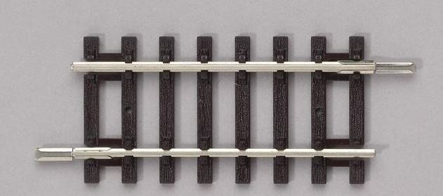 Übergangsgleis zwischen dem PIKO A-Gleis und dem PIKO Hobby-Gleis (angeboten von 1992 bis 2002), dem Mehano-Gleis, dem klassischen ROCO 2,5 mm Neusilbergleis, dem Fleischmann Profi- und Modell-Gleis sowie anderen Gleisen mit einer Profilhöhe von 2,5 mm, ausgestattet mit den Gleisverbindern mit unterschiedlichen Schuhbreiten , Länge: 61,88 mm