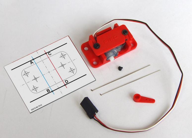 Kräftiger Miniatur-Servomotor zur Montage unter der Modellbahnplatte | einfachste Montage mit Hilfe einer Bohrschablone | geeignet für alle PIKO A-Gleis Weichen und viele andere Gleissysteme | mit Grundplatte inkl. Verriegelungssteg | zwei Stelldrähte zur Auswahl unterschiedlicher Stellkräfte