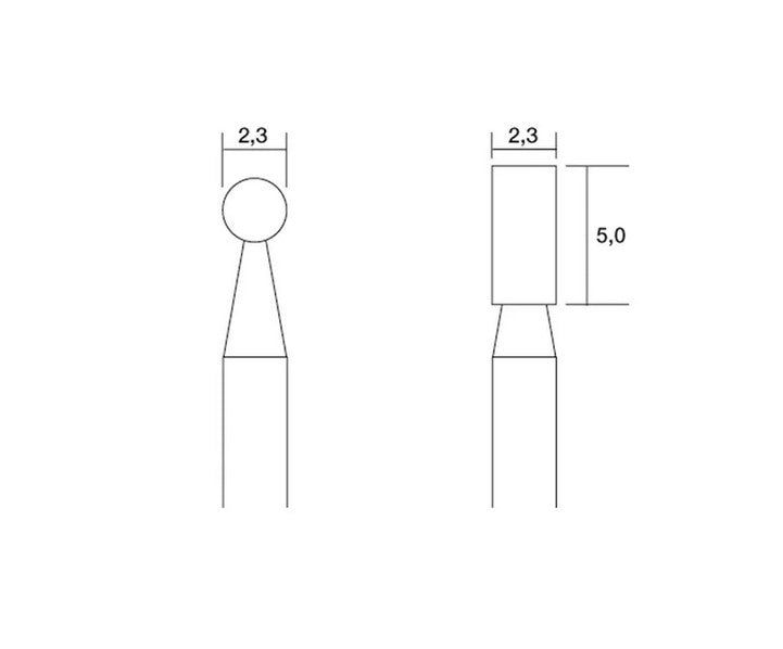 Technische Daten: Schaft: Ø 2,35 mm; Zylinder: 2,3 x 5 mm; Kugel: 2,3 mm
