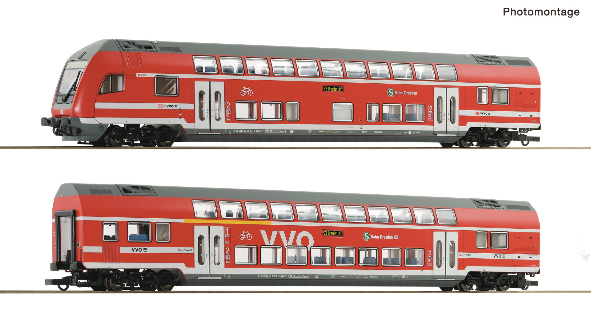 Roco 6200066, 2er Set Doppelstockwagen mit Steuerwagen, DBAG, Ep.VI 'S2 Dresden Flughafen', DC-Digital / H0