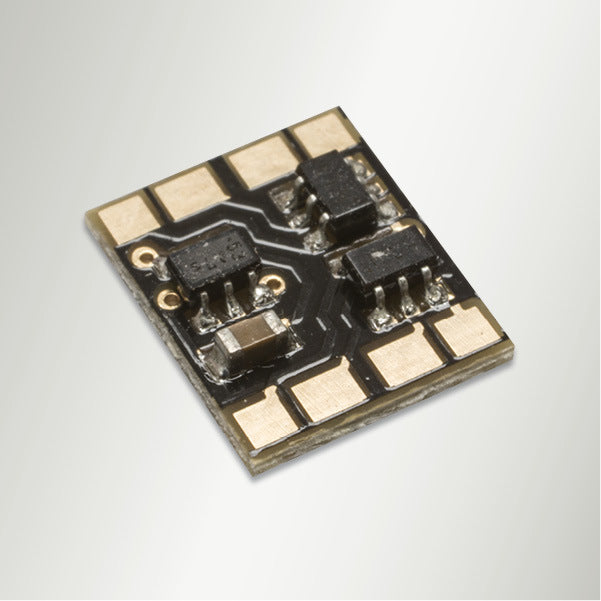 Mit den Abmessungen 8,5 mm x 7,5 mm x 1,7 mm ist er klein genug, um in fast jeder Modell-Lok Platz zu finden. Es ist möglich, Verbraucher mit einer Aufnahme von 150 mA pro Ausgang anzuschließen. Allerdings darf in der Summe aller Ausgänge die Belastung von 150 mA nicht überschritten werden. Ist dies der Fall, ist ein weiterer Baustein anzuschließen.