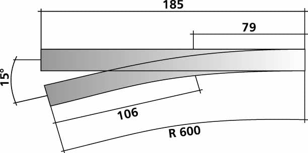 Tillig 82322, Weiche links 15°, Abzweig 15°, Radius 600, Länge 185 mm / H0