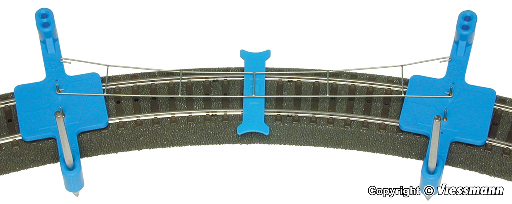 Mit dieser Mastpositionslehre können Sie die richtige Position Ihrer Oberleitungsmasten in Kurvenbereichen spielend leicht bestimmen. Die zusätzlich enthaltene Fahrdrahtabweichungslehre ermöglicht Ihnen eine Kontrolle der Abweichung des Fahrdrahtes von der Gleismitte. Dadurch ist sichergestellt, dass der Stromabnehmer immer Kontakt mit dem Fahrdraht hat.