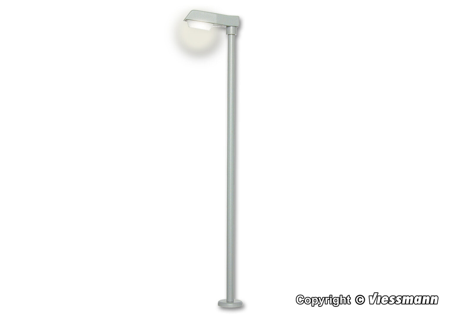 Moderne Straßenleuchte der Epochen IV – VI. Vorbildgetreuer Messingmast mit Steckfuß für eine besonders einfache Montage. Wartungsfrei dank LED-Beleuchtung. Höhe: 10 cm.